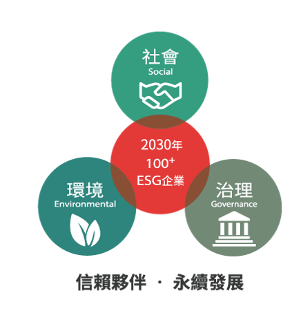 結(jié)合全球信賴夥伴,共同構(gòu)建 ESG 產(chǎn)業(yè)聯(lián)盟;並訂定 ESG 評鑑標準,提供一股穩(wěn)定的力量,目標於 2030 年創(chuàng)建百家 ESG 企業(yè),為下一代更美好的環(huán)境盡一份心力!