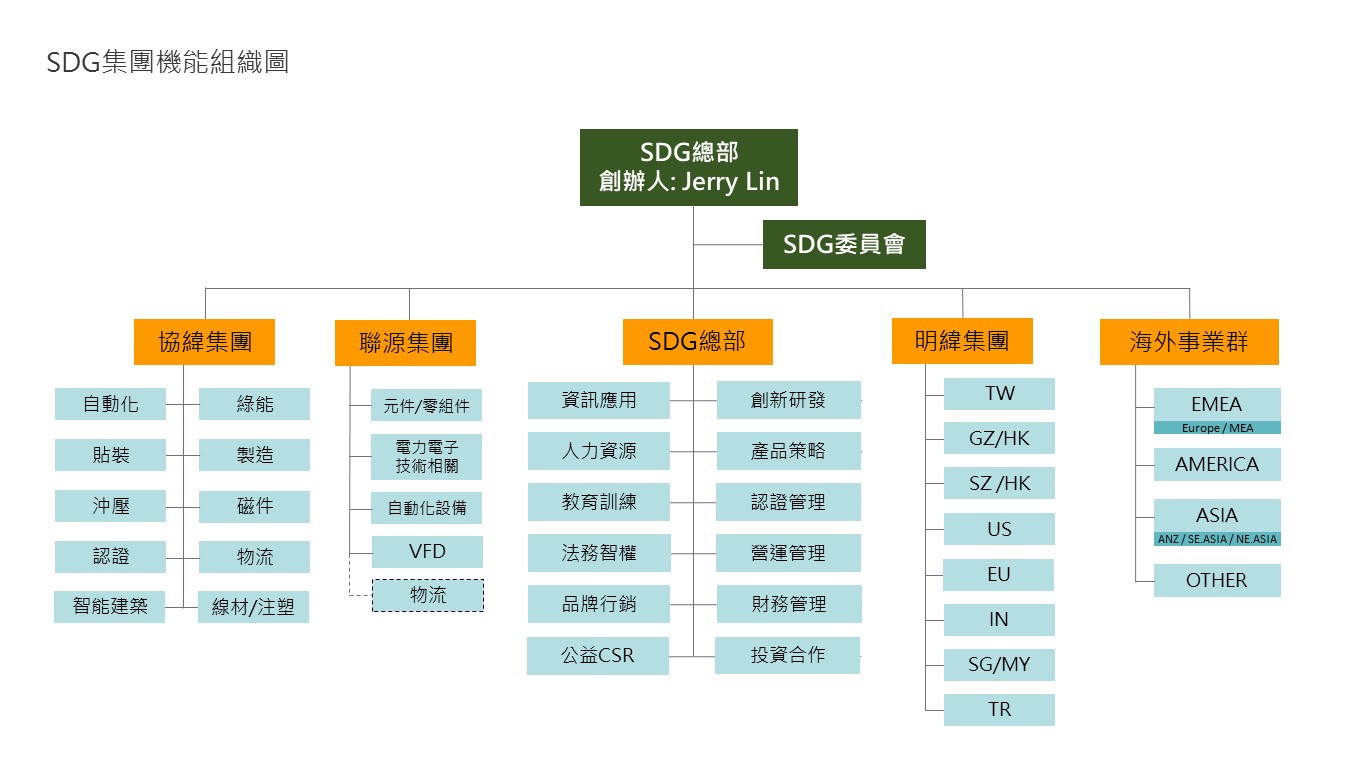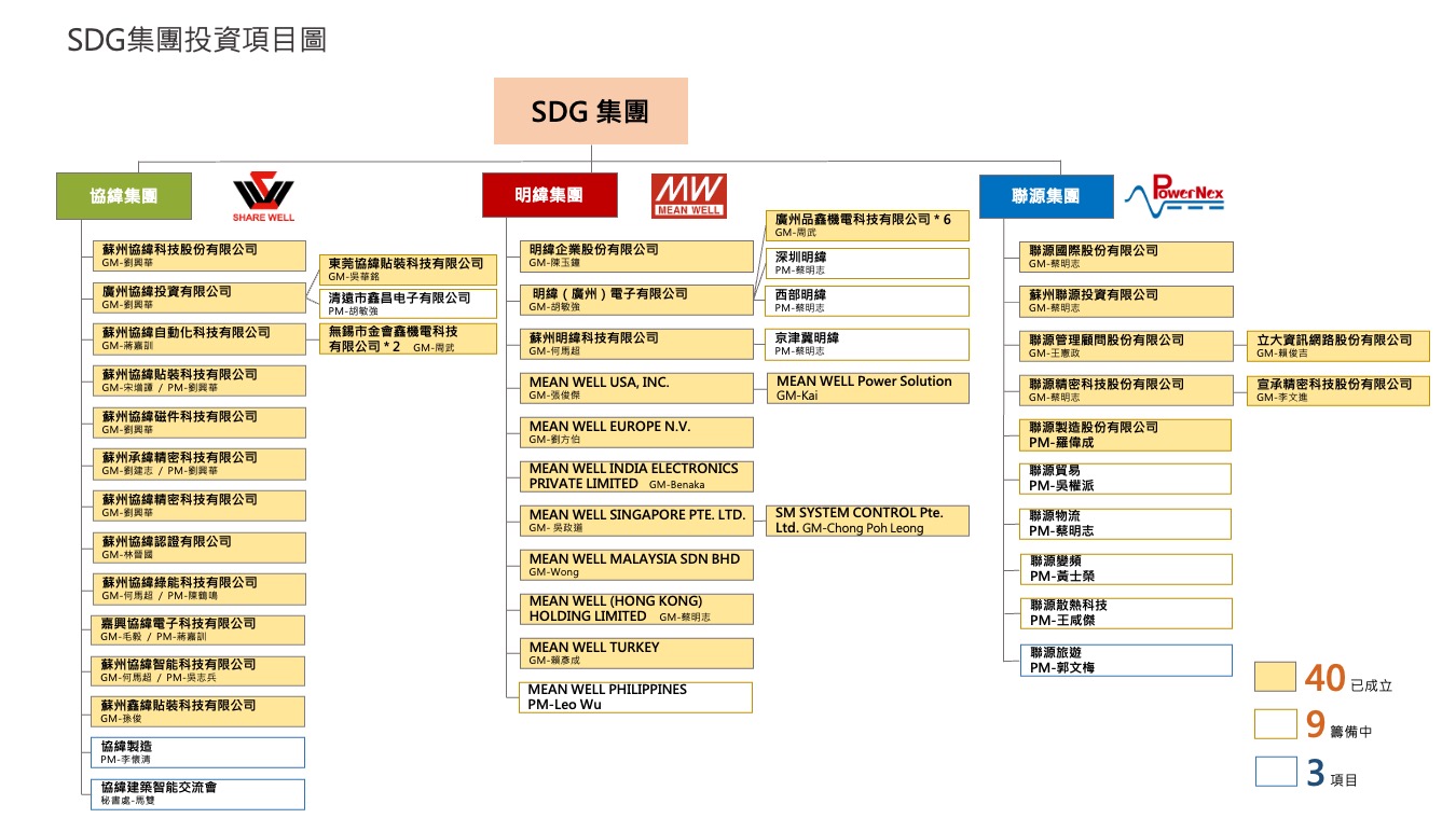 創(chuàng)辦人林國棟先生將聯(lián)合國永續(xù)發(fā)展目標其中 9項,融入到集團永續(xù)經(jīng)營發(fā)展的集團藍圖中。由40餘年耕耘的明緯集團、串聯(lián)聯(lián)源集團和協(xié)緯集團,以明緯公益基金會作為價值核心,秉持「心懷善意」的初衷,組建SDG集團。