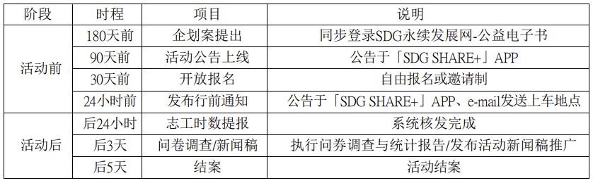 | 6.2 | 依據(jù)SDG集團(tuán)各公司活動計(jì)劃,由權(quán)責(zé)單位于每年10月完成次年度公益電子書。 |